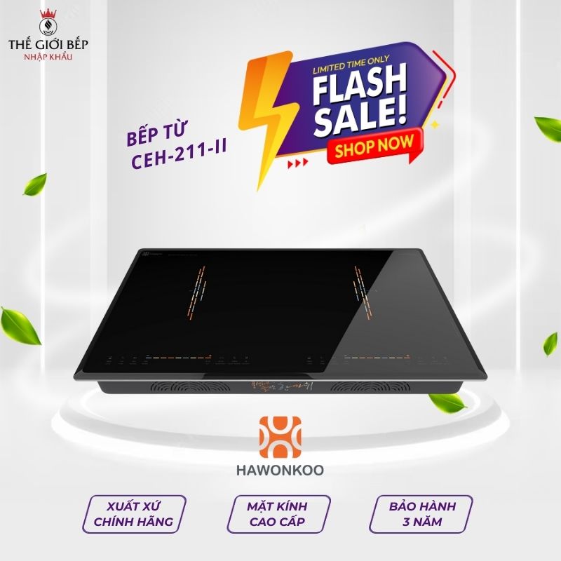 - Thiết kế hiện đại chuẩn gu Hàn Quốc Bếp từ đôi Hawonkoo CEH-211-II là dòng bếp từ 2 vùng nấu cao cấp là sự giao thoa hoàn hảo giữa thời trang và căn bếp. Nhằm mang lại trải nghiệm nấu ăn thông minh và an toàn, sản phẩm này sở hữu thiết kế bắt mắt với mặt kính được in dải màu bằng công nghệ độc quyền cùng các tính năng hiện đại, hứa hẹn sẽ là một trong những thiết bị bếp đáng tiền nhất cho không gian bếp gia đình Việt.
