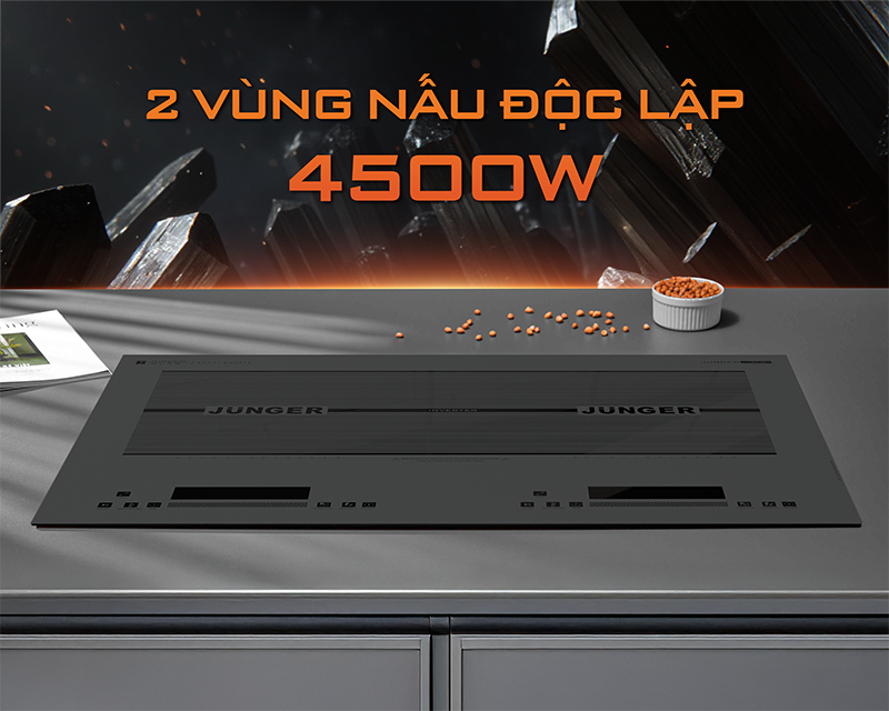 Tổng công suất 4500W mạnh mẽ: Đảm bảo khả năng gia nhiệt nhanh, giúp rút ngắn thời gian nấu nướng, phù hợp cho nhu cầu chế biến đa dạng món ăn mỗi ngày.