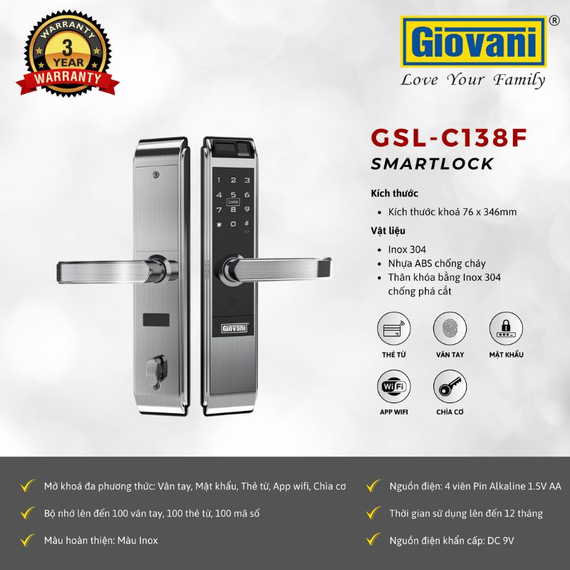 Danh mục: Khóa cửa điện tử | Khóa cửa điện từ Giovani |