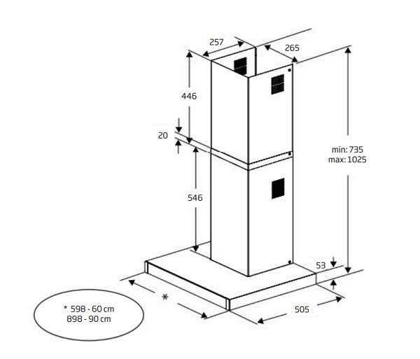 Kích thước nhỏ gọn: Ngang 60cm (Cụ thể: 1025 x 598 x 505 mm), dễ dàng lắp đặt trong các căn hộ chung cư hoặc nhà phố có diện tích bếp vừa và nhỏ.