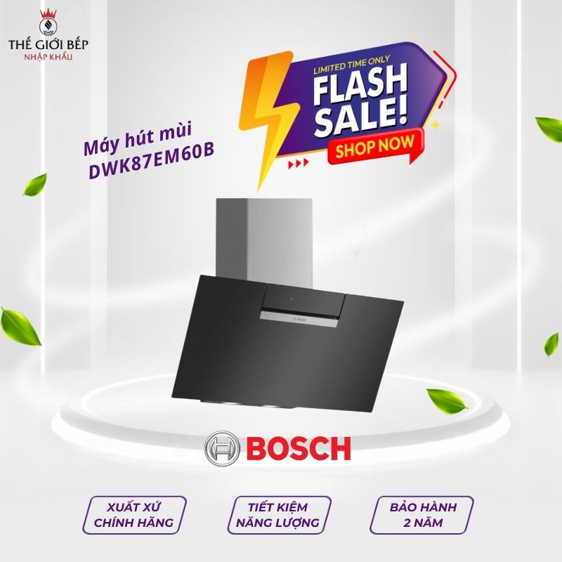 Máy hút mùi Bosch DWK87EM60B nhập khẩu nguyên chiếc cao cấp tại Thế Giới Bếp Nhập Khẩu - Showroom và đại lý chính hãng cấp cao nhất được chứng nhận của thương hiệu BOSCH tại Việt Nam.