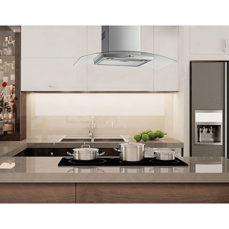Công suất mạnh mẽ: Động cơ turbin đôi cho công suất hút tối đa 825 m³/h, xử lý nhanh chóng mùi, khói và hơi dầu mỡ, mang lại không khí trong lành.