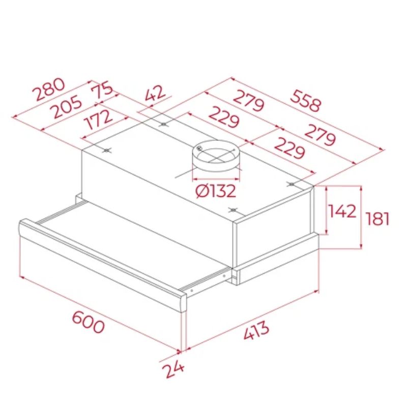 | Kiểu dáng | Máy hút mùi lắp âm dạng kéo (telescópica) |