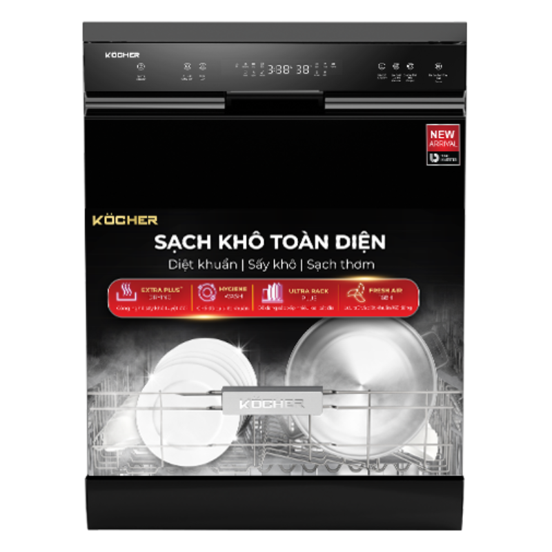 Máy Rửa Bát Kocher X15B là lựa chọn lý tưởng cho gia đình hiện đại nhờ thiết kế sang trọng, dung tích lớn và khả năng làm sạch vượt trội. Máy được trang bị nhiều chương trình rửa linh hoạt như rửa chuyên sâu, rửa tiết kiệm, rửa nhanh… giúp xử lý hiệu quả dầu mỡ và vết bẩn cứng đầu trên bát đĩa, xoong nồi. Hệ thống giàn rửa rộng rãi, sắp xếp linh hoạt tối ưu không gian chứa, phù hợp cho gia đình từ 4–6 người. Kocher X15B vận hành êm ái, tiết kiệm điện nước, đồng thời tích hợp các tính năng an toàn chống rò rỉ nước, bảo vệ thiết bị và không gian bếp. Bảng điều khiển hiện đại, dễ thao tác, giúp việc rửa bát trở nên đơn giản và tiện nghi hơn bao giờ hết.