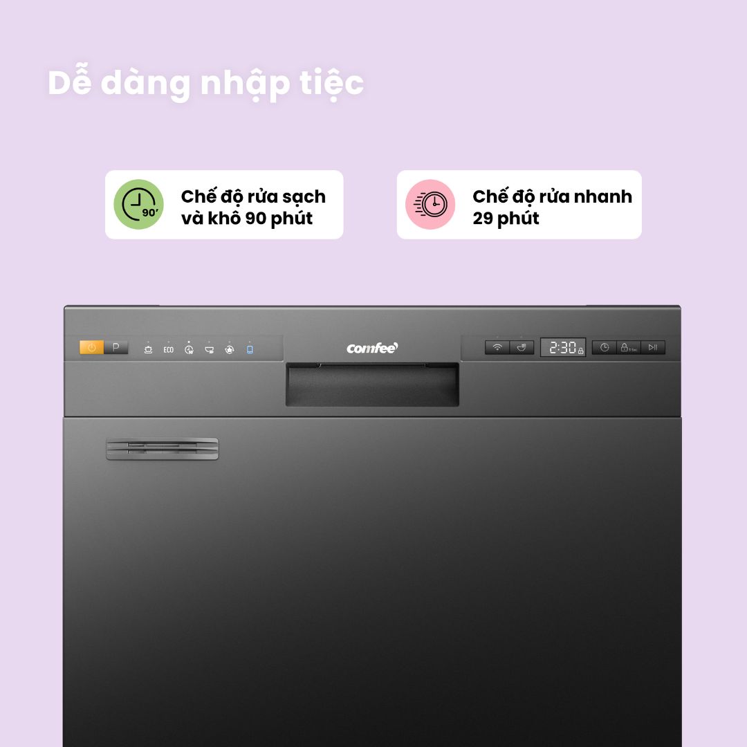 Máy rửa chén Comfee để bàn là lựa chọn hoàn hảo cho không gian bếp nhỏ, mang lại sự tiện lợi và "giải phóng" sức lao động của bạn.