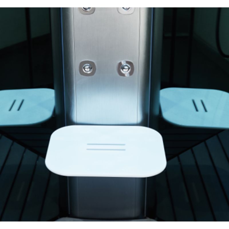 - Trang bị một chiếc ghế ngồi có thể gập lại cũng bằng chất liệu acrylic để bạn tận hưởng trọn vẹn quá trình xông hơi riêng tư.