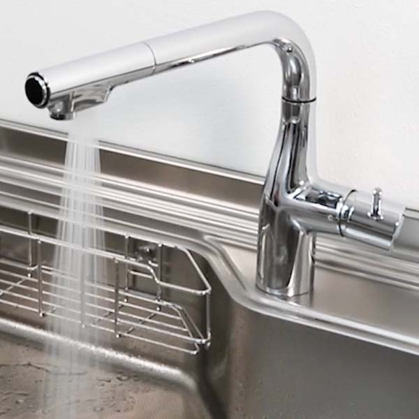 - 2 chế độ xả linh hoạt: Vòi tích hợp chế độ xả thẳng và vòi sen, dễ dàng chuyển đổi chỉ bằng nút bấm trên đầu vòi, đáp ứng đa dạng nhu cầu từ rửa bát đến sơ chế thực phẩm.